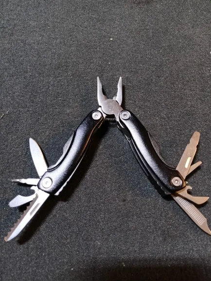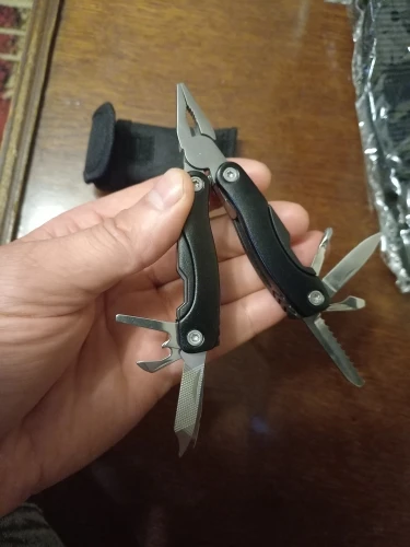 Folded design, each tool will be locked when opened, you will be able to use easily. Sturdy and powerful enough to help you saw wood, scrape scales, cut wires, twist screws, open bottles/cans, etc. It's a great tool to work with.